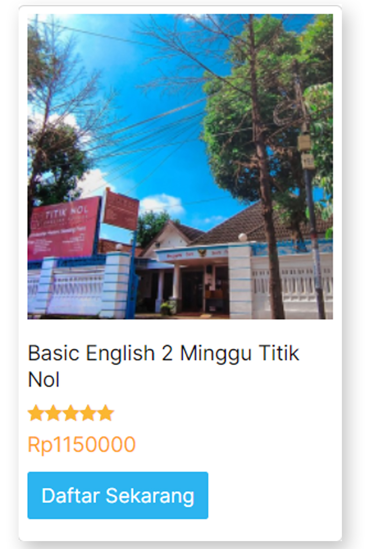 Selama berlajar di Titik Nol English Course banyak sekali pengalaman dan ilmu yang saya dapat, dari basic sampai toefl intensif, di titik nol saya diajari bagaimana mengenal bahasa inggris dari dasar, para tutor mengupas tuntas dalam menjelaskan ditambah adanya modul untuk belajar dan latihan. Dijamin ga akan pernah nyesel selama belajar kursus di titik nol english course. Bagi saya TN sudah menjadi bagian dari keluarga saya karena jauh dari orang tua, dan teman2 TN lah yang memberi kenyamanan selama berada di kampung inggris itu. Fasilitas, Sarana dan prasarana yang menunjang pembelajaran student lengkap, sehingga student nyaman selama pembelajaran dikelas. Sukses selalu TN ?jaya selalu!